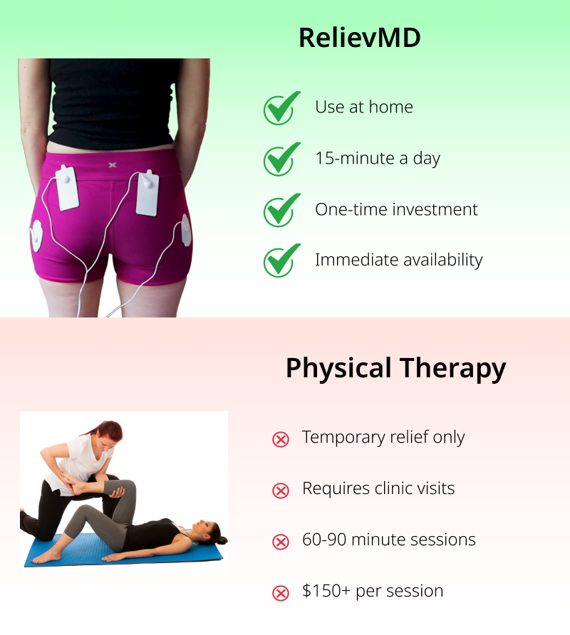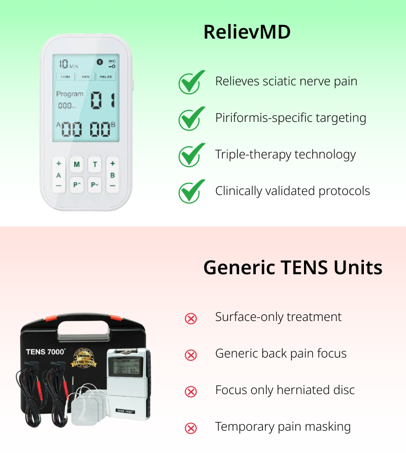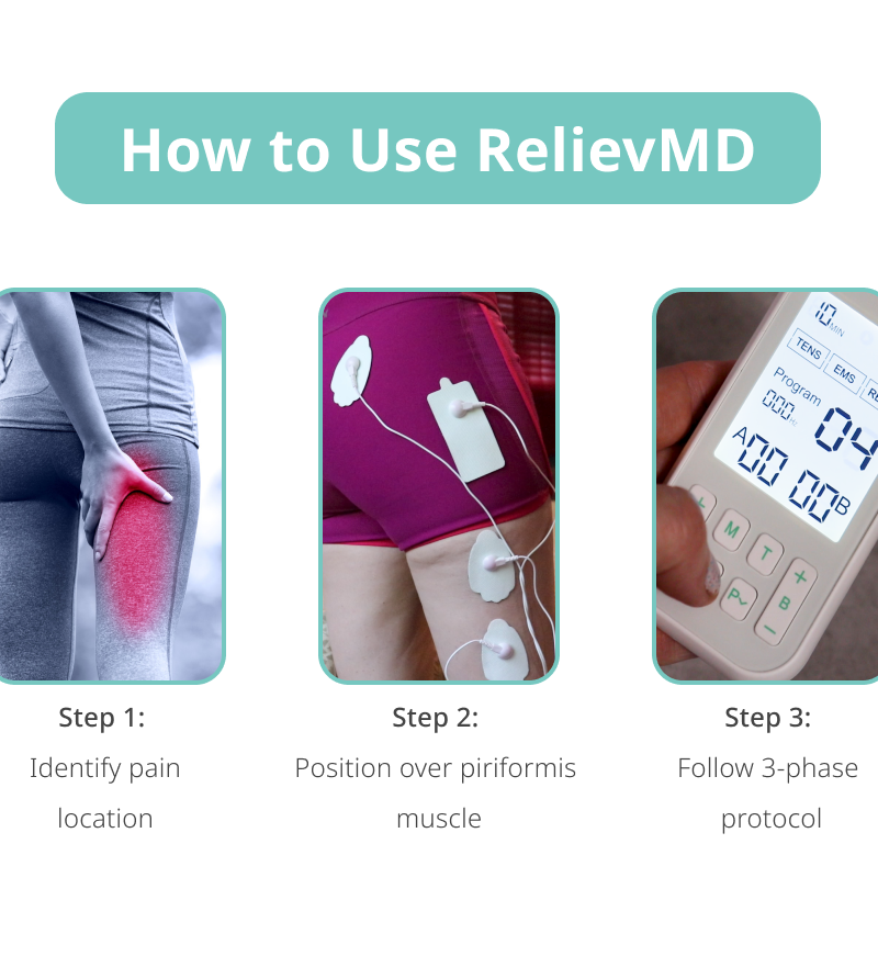 Generic TENS units only mask pain temporarily and can't penetrate deep enough to reach the piriformis muscle. RelievMD combines three therapies: